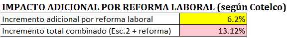 Y los costos adicionales por la reforma laboral, que afecta extras, dominicales y festivos serían: