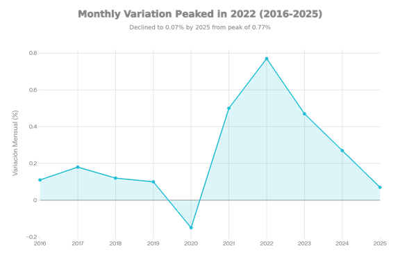 Al analizar la serie histórica, el resultado de noviembre de 2025 (0.07%) se destaca como el registro más bajo para este mes en los últimos tres años, marcando un claro descenso frente al pico inflacionario observado en 2022 (0.77%), lo que confirma la senda de estabilización de precios a nivel país.