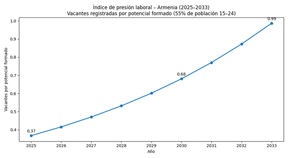 Gráfica 4. Índice de presión laboral – Armenia (2025–2033)
