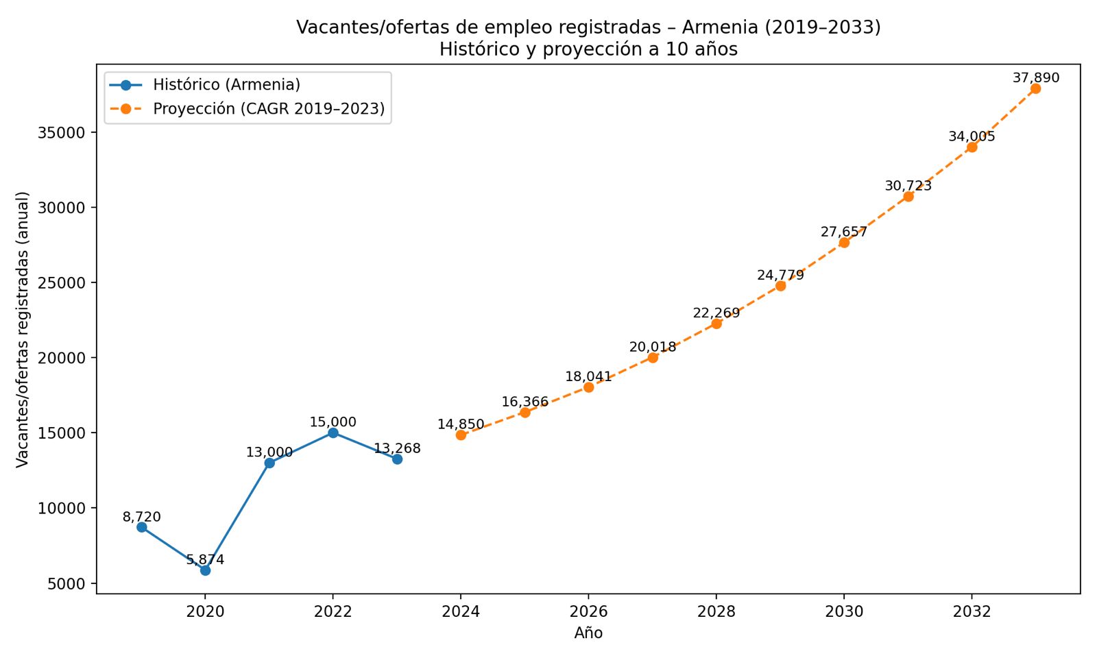 Gráfica 3. Vacantes/ofertas de empleo registradas – Armenia (2019–2033)