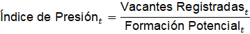 Para evaluar la relación entre oferta educativa y demanda laboral, se construyó un Índice de Presión Laboral, definido como: