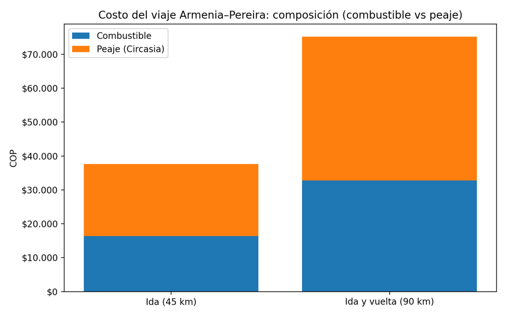 Ahorro o beneficio en Pereira (mejor precio + más variedad y calidad) vs Costo de ir (combustible + tiempo + parqueo + riesgos + peajes si existieran)