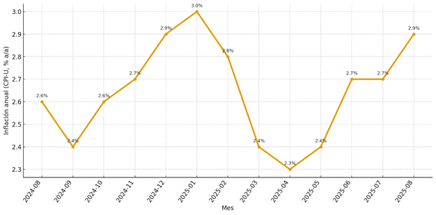 Bureau of Labor Statistics (BLS). (2025). Consumer Price Index – August 2025. Washington, D.C.: U.S. Department of Labor. Recuperado de bls.gov.