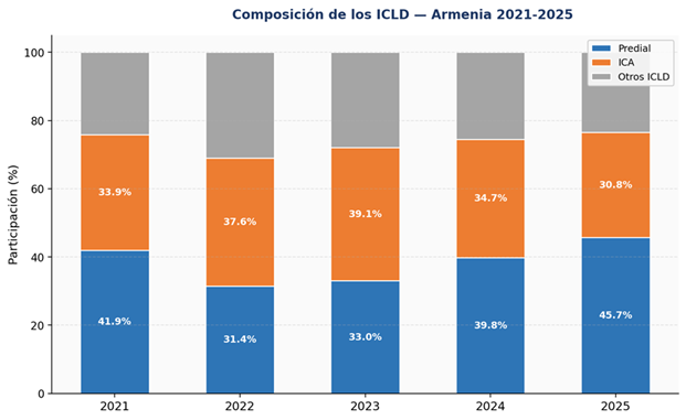 | Los ICLD de Armenia han crecido de forma dinámica: 117,6% entre 2021 y 2025 | Predial +137,4%, ICA +97,3% |